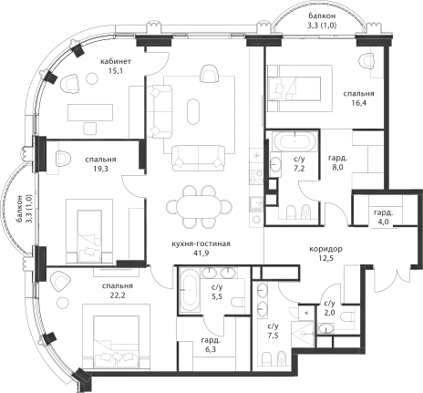 374 387 400 ₽5+к.квартира, 155.4 м², 12 эт.