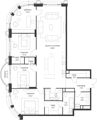 390 260 300 ₽5+к.квартира, 167.9 м², 11 эт.