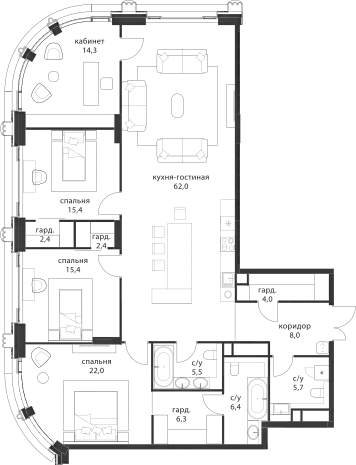 5+к.квартира, 169.8 м², 3 эт. в ЖК Татарская 35 Корпус 1