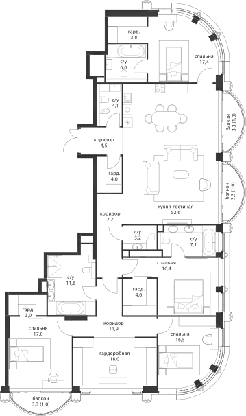 5+к.квартира, 209.4 м², 17 эт. в ЖК Татарская 35 Корпус 1
