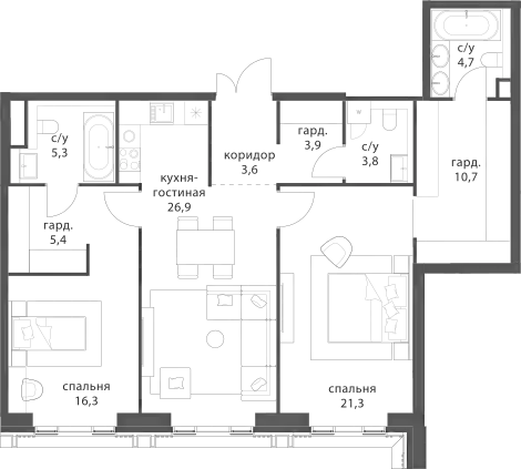 142 470 800 ₽3-к.квартира, 100.9 м², 10 эт.