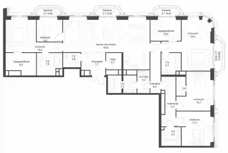 306 842 400 ₽5+к.квартира, 224.3 м², 17 эт.