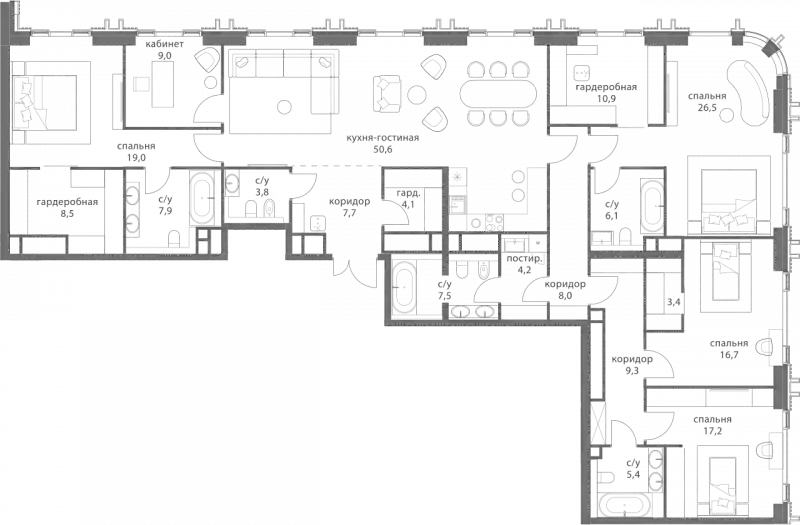 400 995 600 ₽5+к.квартира, 209 м², 9 эт.