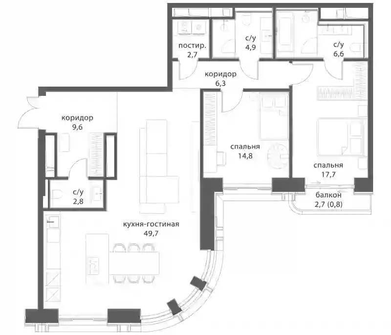179 686 800 ₽4-к.квартира, 124.3 м², 4 эт.
