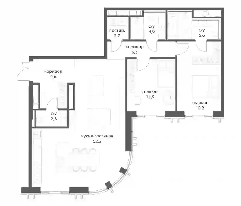В комплексе предложен большой выбор элитных лотов: от функциональных однокомнатных квартир до семейных резиденций и пентхаусов со вторым светом. Есть и редкие форматы: с окнами в ванных, молированным угловым остеклением, возможностью установки камина. В квартирах спроектированы панорамные окна «в пол» и двухстворчатые двери. В более чем 50% квартир предусмотрены террасы, лоджии и балконы. Квартиры сдаются без отделки и внутренних перегородок.