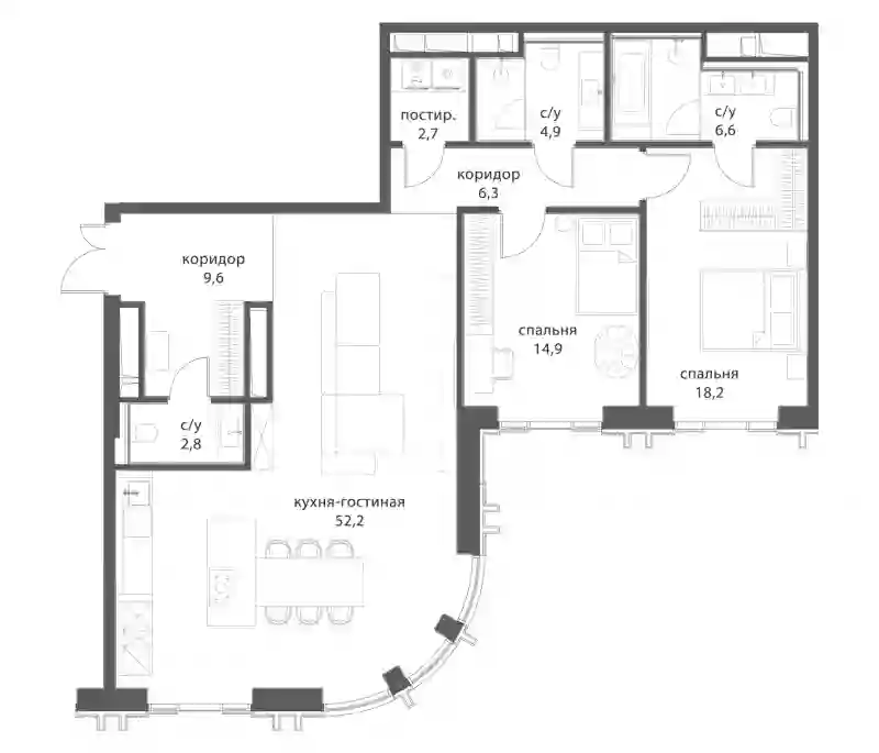 211 939 000 ₽3-к.квартира, 118.2 м², 16 эт.