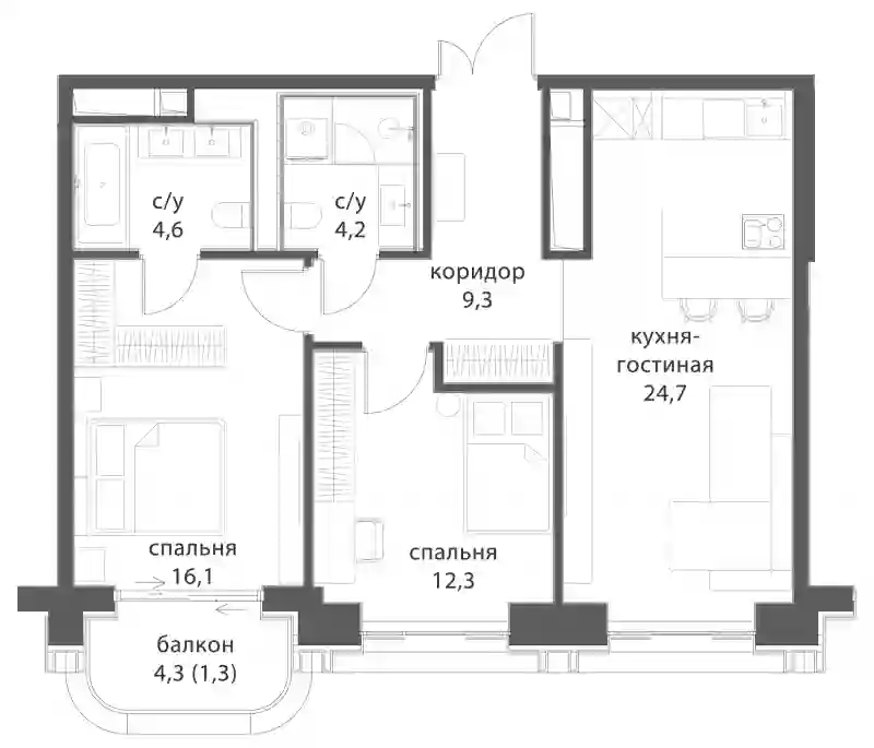 В комплексе предложен большой выбор элитных лотов: от функциональных однокомнатных квартир до семейных резиденций и пентхаусов со вторым светом. Есть и редкие форматы: с окнами в ванных, молированным угловым остеклением, возможностью установки камина. В квартирах спроектированы панорамные окна «в пол» и двухстворчатые двери. В более чем 50% квартир предусмотрены террасы, лоджии и балконы. Квартиры сдаются без отделки и внутренних перегородок.