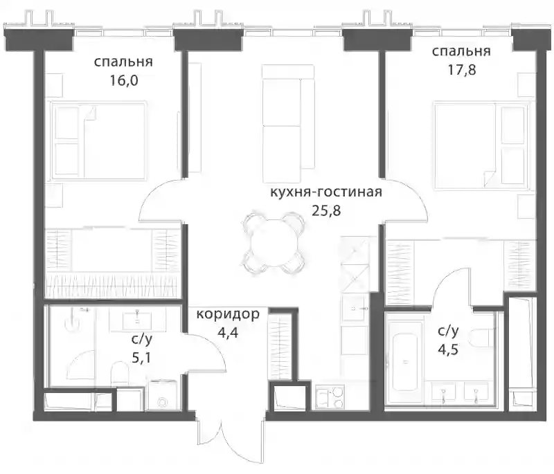 В комплексе предложен большой выбор элитных лотов: от функциональных однокомнатных квартир до семейных резиденций и пентхаусов со вторым светом. Есть и редкие форматы: с окнами в ванных, молированным угловым остеклением, возможностью установки камина. В квартирах спроектированы панорамные окна «в пол» и двухстворчатые двери. В более чем 50% квартир предусмотрены террасы, лоджии и балконы. Квартиры сдаются без отделки и внутренних перегородок.