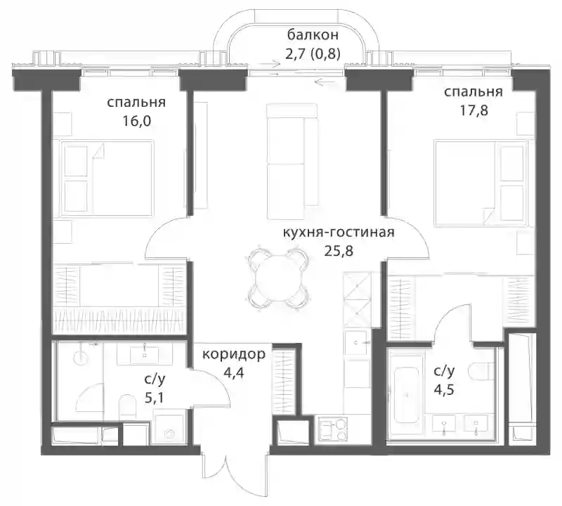 В комплексе предложен большой выбор элитных лотов: от функциональных однокомнатных квартир до семейных резиденций и пентхаусов со вторым светом. Есть и редкие форматы: с окнами в ванных, молированным угловым остеклением, возможностью установки камина. В квартирах спроектированы панорамные окна «в пол» и двухстворчатые двери. В более чем 50% квартир предусмотрены террасы, лоджии и балконы. Квартиры сдаются без отделки и внутренних перегородок.