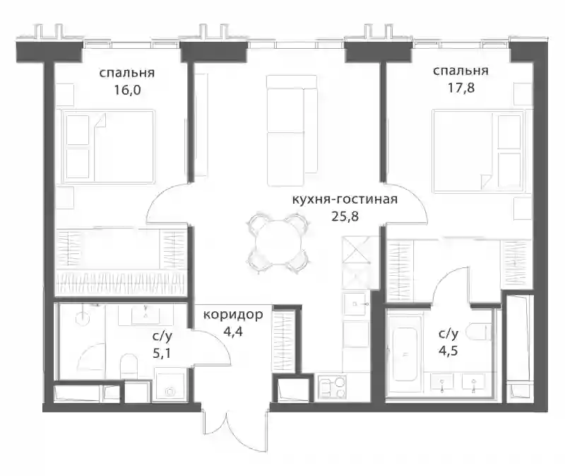 В комплексе предложен большой выбор элитных лотов: от функциональных однокомнатных квартир до семейных резиденций и пентхаусов со вторым светом. Есть и редкие форматы: с окнами в ванных, молированным угловым остеклением, возможностью установки камина. В квартирах спроектированы панорамные окна «в пол» и двухстворчатые двери. В более чем 50% квартир предусмотрены террасы, лоджии и балконы. Квартиры сдаются без отделки и внутренних перегородок.