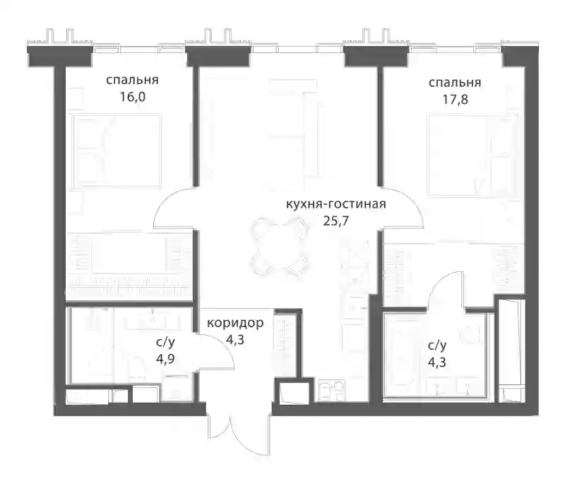 В комплексе предложен большой выбор элитных лотов: от функциональных однокомнатных квартир до семейных резиденций и пентхаусов со вторым светом. Есть и редкие форматы: с окнами в ванных, молированным угловым остеклением, возможностью установки камина. В квартирах спроектированы панорамные окна «в пол» и двухстворчатые двери. В более чем 50% квартир предусмотрены террасы, лоджии и балконы. Квартиры сдаются без отделки и внутренних перегородок.
