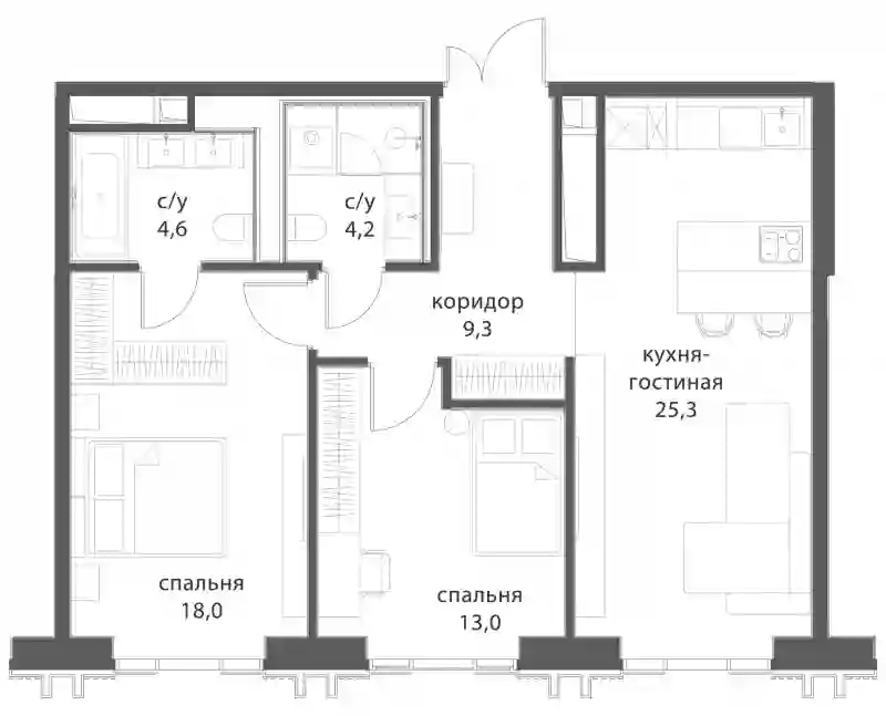 В комплексе предложен большой выбор элитных лотов: от функциональных однокомнатных квартир до семейных резиденций и пентхаусов со вторым светом. Есть и редкие форматы: с окнами в ванных, молированным угловым остеклением, возможностью установки камина. В квартирах спроектированы панорамные окна «в пол» и двухстворчатые двери. В более чем 50% квартир предусмотрены террасы, лоджии и балконы. Квартиры сдаются без отделки и внутренних перегородок.