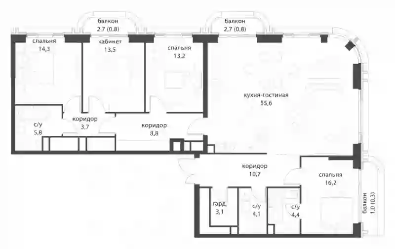 В комплексе предложен большой выбор элитных лотов: от функциональных однокомнатных квартир до семейных резиденций и пентхаусов со вторым светом. Есть и редкие форматы: с окнами в ванных, молированным угловым остеклением, возможностью установки камина. В квартирах спроектированы панорамные окна «в пол» и двухстворчатые двери. В более чем 50% квартир предусмотрены террасы, лоджии и балконы. Квартиры сдаются без отделки и внутренних перегородок.
