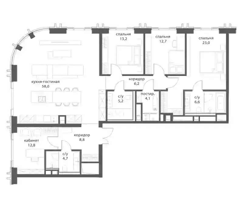 5+к.квартира, 155.3 м², 13 эт. в ЖК Татарская 35 Корпус 3