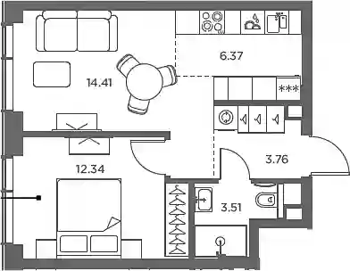 20 243 406 ₽2-к.квартира, 41.21 м², 17 эт.