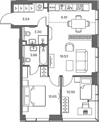 27 455 150 ₽3-к.квартира, 64.64 м², 18 эт.