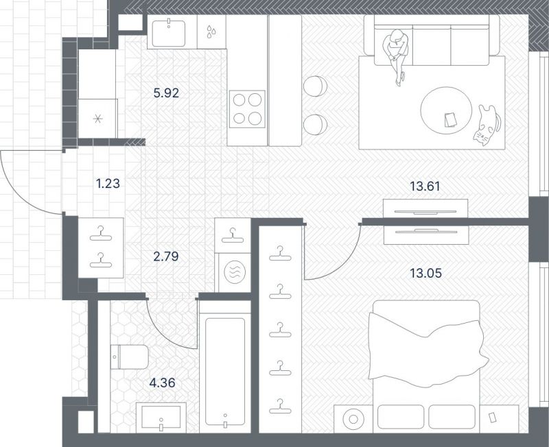 2-к.квартира, 40.96 м², 24 эт. в ЖК TATE Корпус B