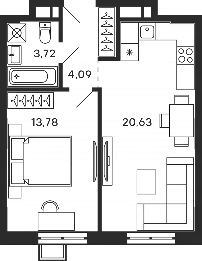 13 712 794 ₽2-к.квартира, 39.65 м², 28 эт.