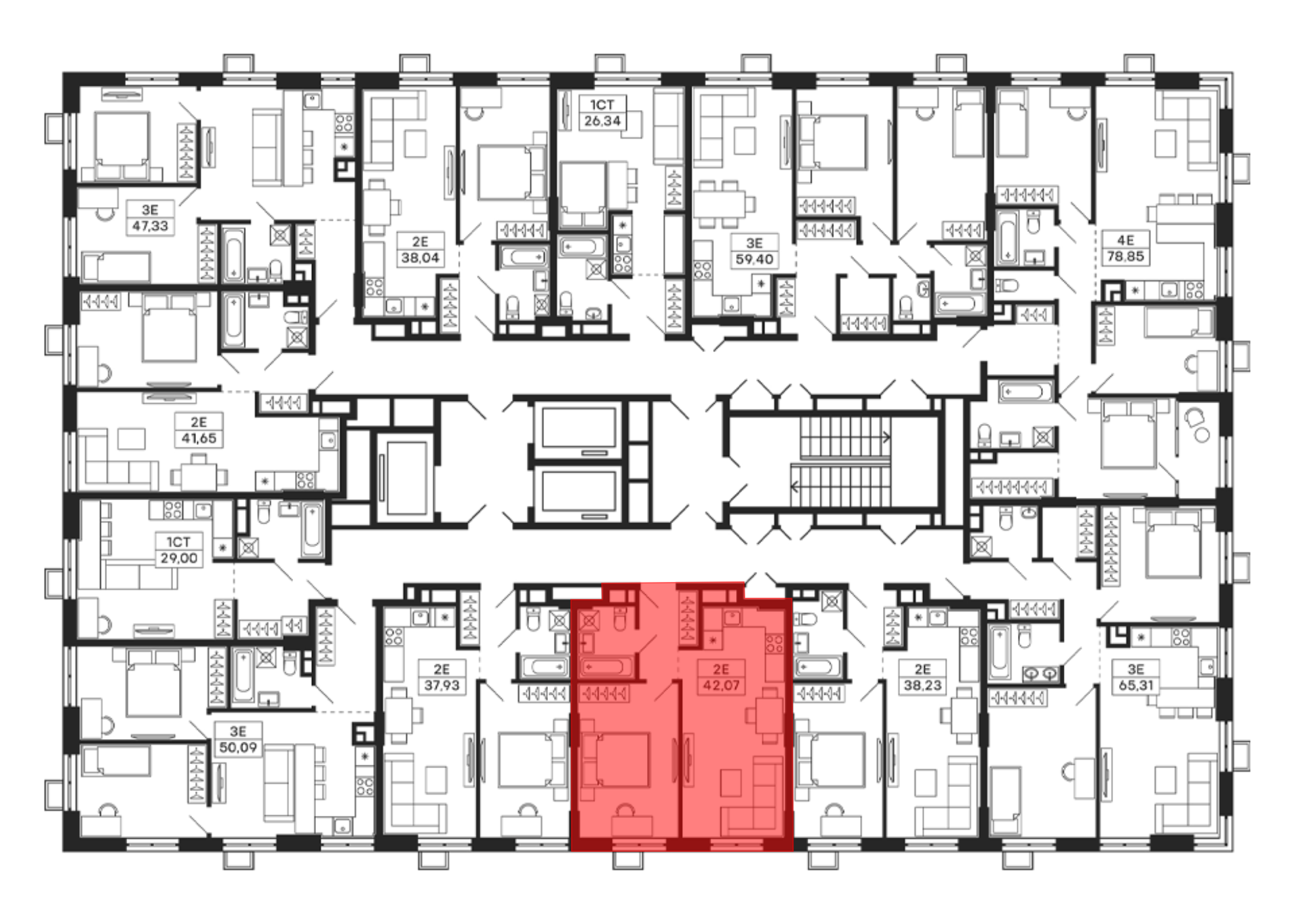 10 915 042 ₽2-к.квартира, 39.59 м², 26 эт.