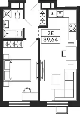 2-к.квартира, 39.64 м², 18 эт. в ЖК Тетрис Корпус 7