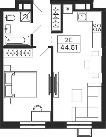 2-к.квартира, 44.51 м², 22 эт. в ЖК Тетрис Корпус 7