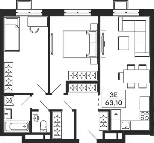 3-к.квартира, 63.1 м², 26 эт. в ЖК Тетрис Корпус 7
