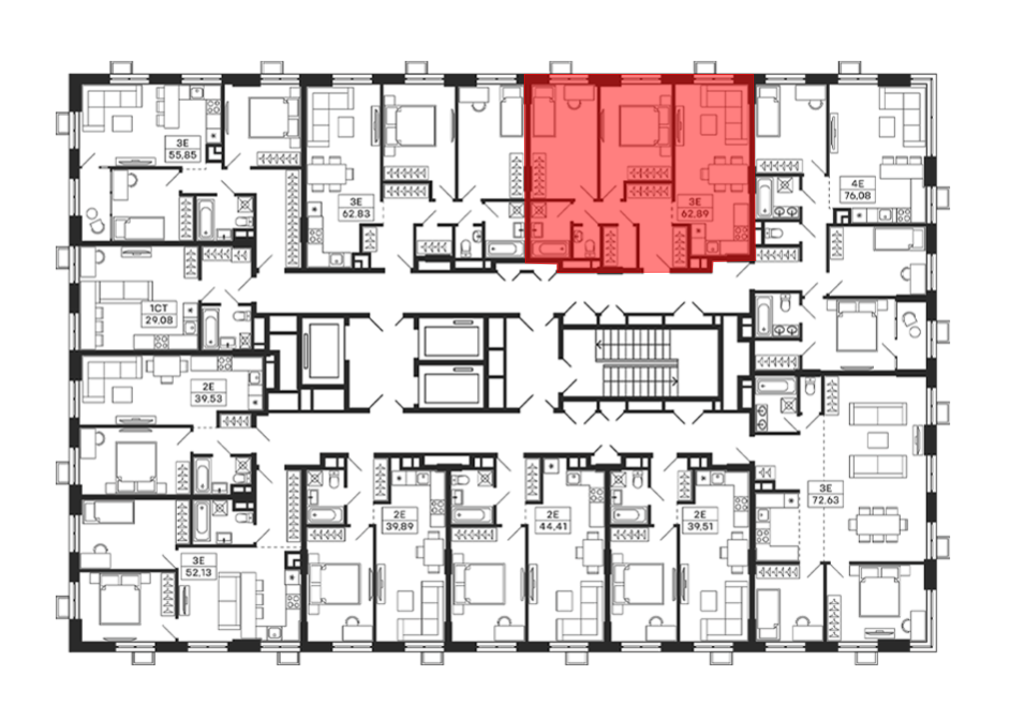 3-к.квартира, 63.1 м², 28 эт. в ЖК Тетрис Корпус 7