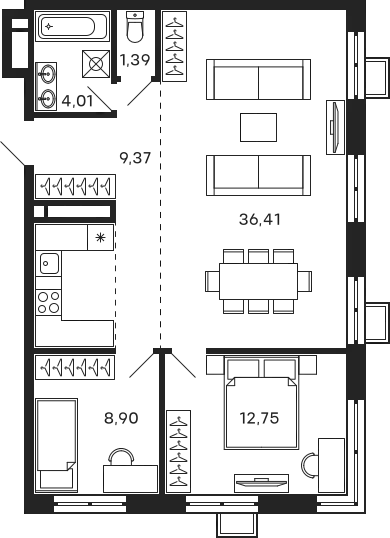 12 352 105 ₽2-к.квартира, 39.91 м², 25 эт.