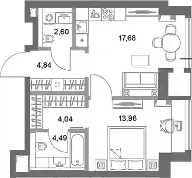 28 088 460 ₽1-к.квартира, 47.56 м², 23 эт.
