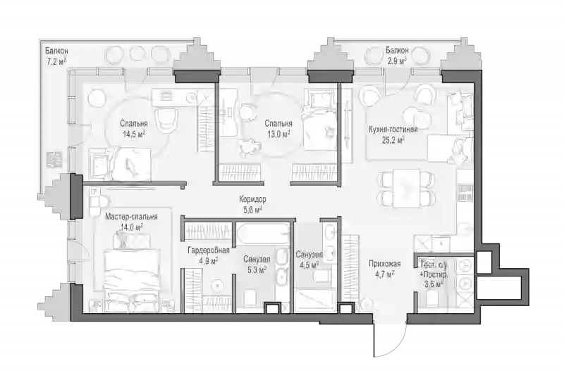 4-к.квартира, 95.17 м², 5 эт. в ЖК Тишинский бульвар Корпус 2