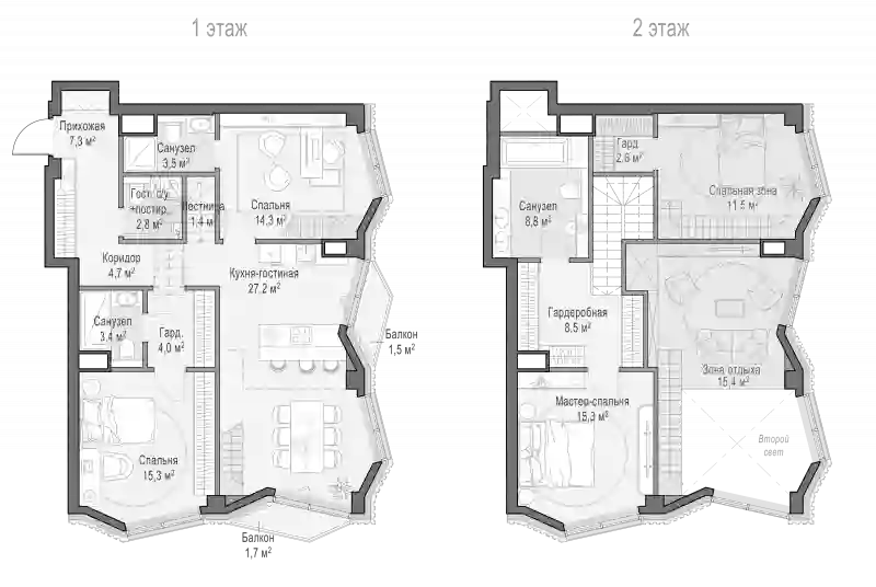 В квартале предложен широкий выбор квартир с увеличенной до 7,65 метра высотой потолков, пентхаусов с террасами, дровяными каминами и потолками высотой до 8,25 м. Есть варианты со вторым светом и возможностью обустройства второго этажа. В наличии квартиры High Level на предпоследнем этаже, с возможностью обустроить дровяной камин. Есть квартиры с террасами в уровень этажа, лоты с панорамными окнами, индивидуальными балконами и моллированным остеклением. Все квартиры сдаются без отделки.