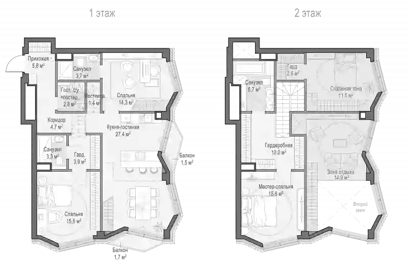 В квартале предложен широкий выбор квартир с увеличенной до 7,65 метра высотой потолков, пентхаусов с террасами, дровяными каминами и потолками высотой до 8,25 м. Есть варианты со вторым светом и возможностью обустройства второго этажа. В наличии квартиры High Level на предпоследнем этаже, с возможностью обустроить дровяной камин. Есть квартиры с террасами в уровень этажа, лоты с панорамными окнами, индивидуальными балконами и моллированным остеклением. Все квартиры сдаются без отделки.