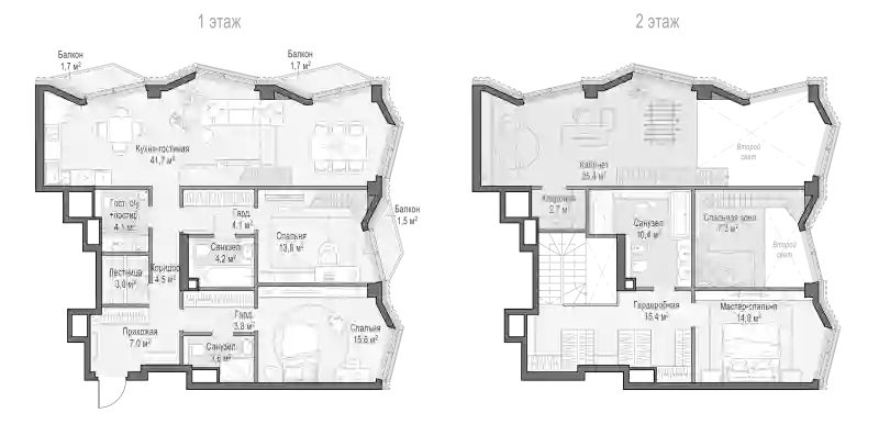 В квартале предложен широкий выбор квартир с увеличенной до 7,65 метра высотой потолков, пентхаусов с террасами, дровяными каминами и потолками высотой до 8,25 м. Есть варианты со вторым светом и возможностью обустройства второго этажа. В наличии квартиры High Level на предпоследнем этаже, с возможностью обустроить дровяной камин. Есть квартиры с террасами в уровень этажа, лоты с панорамными окнами, индивидуальными балконами и моллированным остеклением. Все квартиры сдаются без отделки.