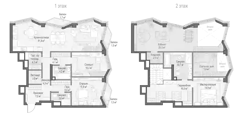 В квартале предложен широкий выбор квартир с увеличенной до 7,65 метра высотой потолков, пентхаусов с террасами, дровяными каминами и потолками высотой до 8,25 м. Есть варианты со вторым светом и возможностью обустройства второго этажа. В наличии квартиры High Level на предпоследнем этаже, с возможностью обустроить дровяной камин. Есть квартиры с террасами в уровень этажа, лоты с панорамными окнами, индивидуальными балконами и моллированным остеклением. Все квартиры сдаются без отделки.