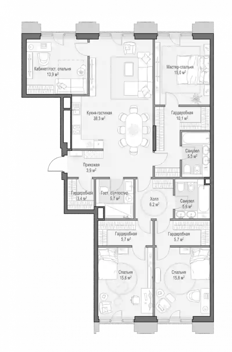 5+к.квартира, 150.4 м², 5 эт. в ЖК Тишинский бульвар Корпус 4
