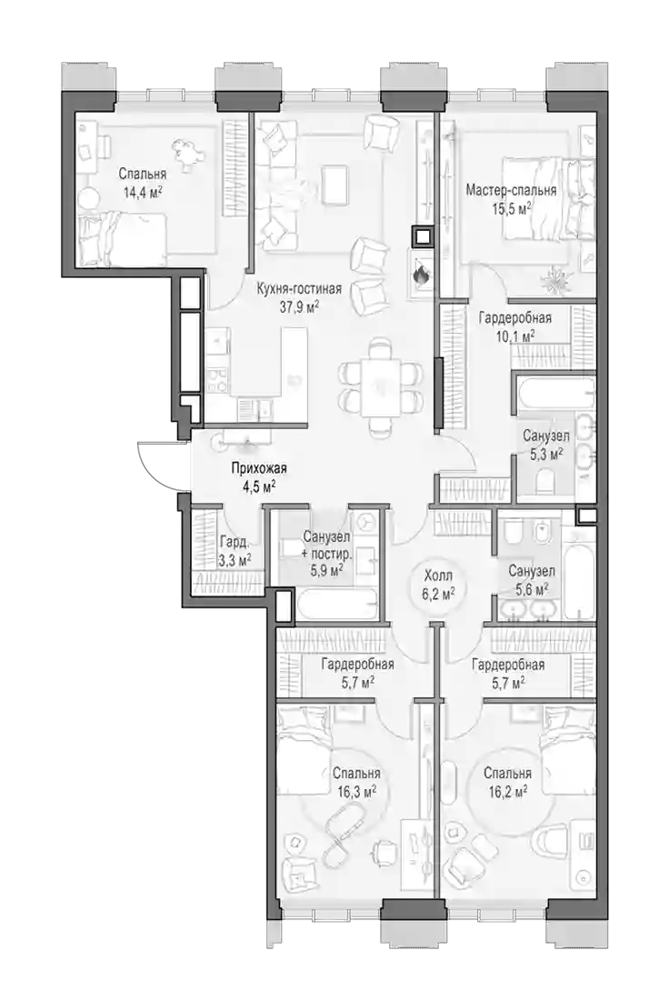5+к.квартира, 153 м², 7 эт. в ЖК Тишинский бульвар Корпус 4