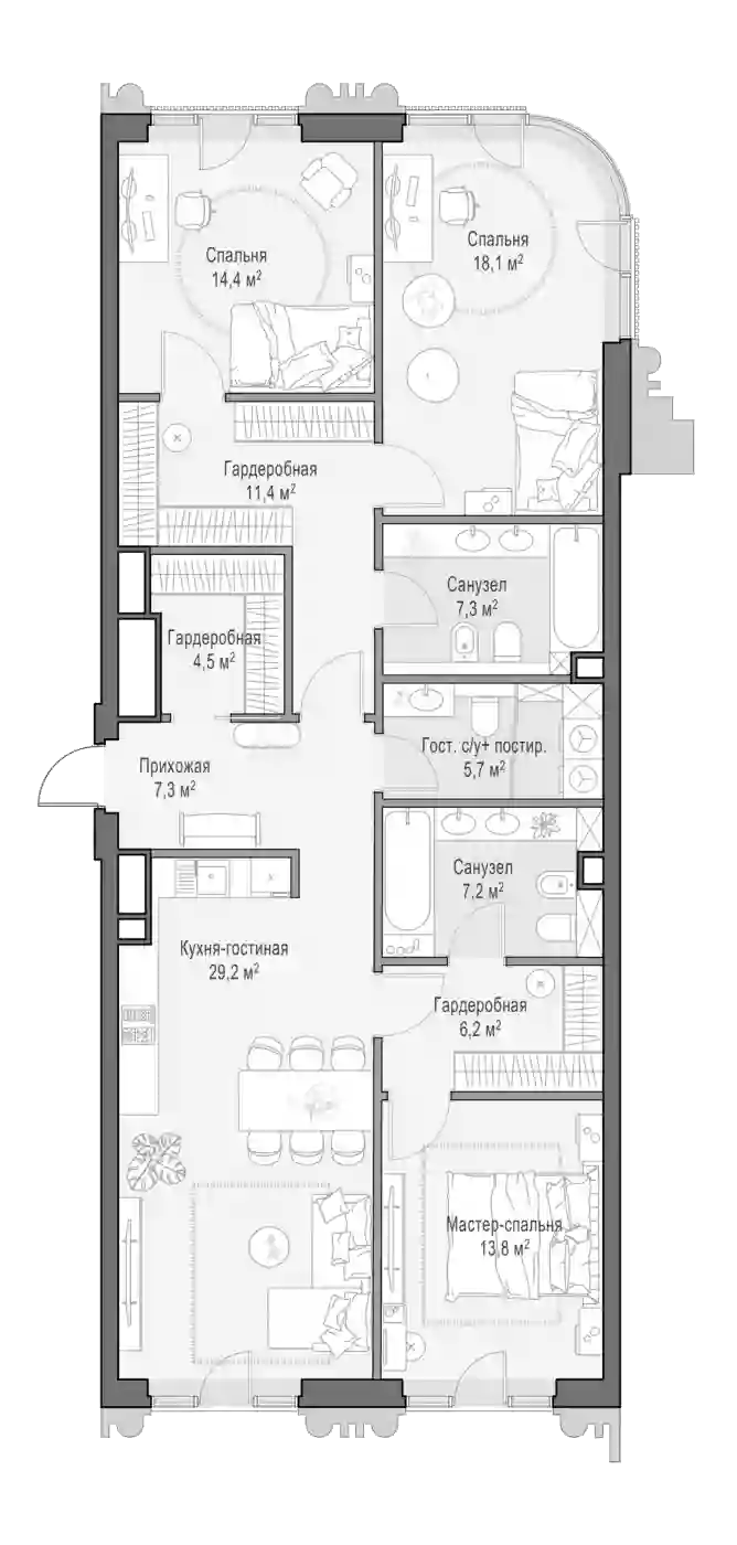 4-к.квартира, 124.2 м², 8 эт. в ЖК Тишинский бульвар Корпус 6