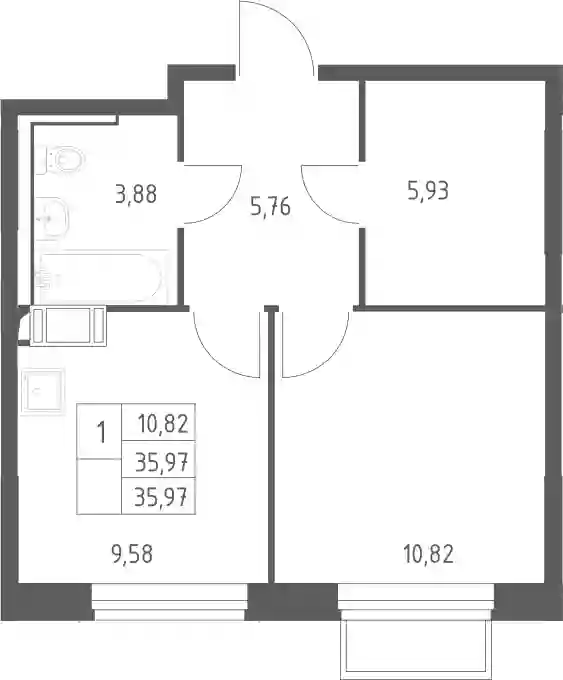 1-к.квартира, 35.97 м², 15 эт. в ЖК Томилино Парк Корпус 6.4