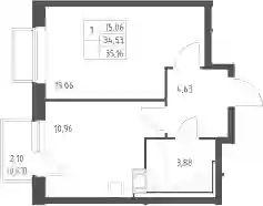 1-к.квартира, 34.53 м², 16 эт. в ЖК Томилино Парк Корпус 6.1