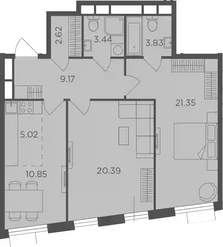 В комплексе предложено множество планировочных решений: в наличии квартиры, как классического типа, так и европланировки от одной до пяти комнат. Предусмотрены квартиры с террасами, большими кухнями-гостиными до 40 кв.м, мастер-спальнями, комфортными гардеробными, просторными санузлами, часть из которых с окном.