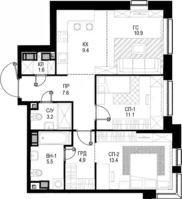 3-к.квартира, 67.6 м², 23 эт. в ЖК Трилогия CRYSTAL Корпус 9.1
