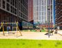 На 1 этаже здания находится множество торговых точек и услуг, включая большой детский центр с игровой и образовательной зонами. Здесь также работают спортивные и детские клубы, медицинский центр, ресторан, супермаркет и центр Сообщества. В деловой части здания располагаются офисы и фуд-корт. Между корпусами обустроен уютный двор-сад, где можно насладиться спокойствием в арт-зонах с гамаками, поработать на свежем воздухе в коворкинге или отдохнуть на шезлонгах у пруда. Здесь также есть детские игровые площадки, воркаут-зона и кинотеатр под открытым небом. Для владельцев автомобилей в комплексе предусмотрен подземный паркинг с зимним садом, пунктом подкачки колес и зарядками для электромобилей.