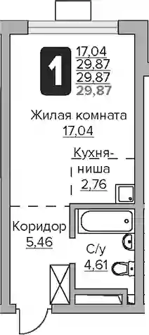 Студия, 29.87 м², 18 эт. в ЖК Тринити Корпус 1