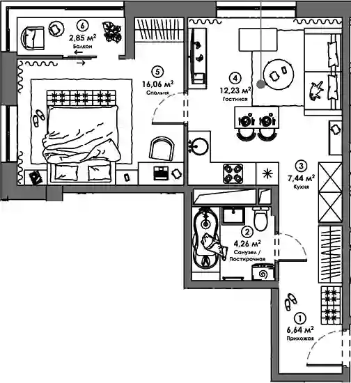 9 772 490 ₽1-к.квартира, 49.1 м², 16 эт.