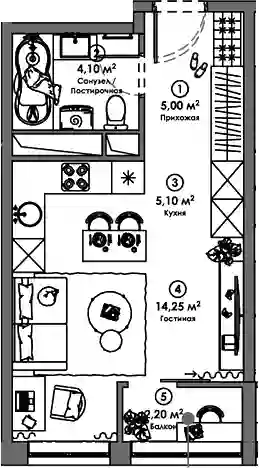 5 170 000 ₽Студия, 29.42 м², 5 эт.