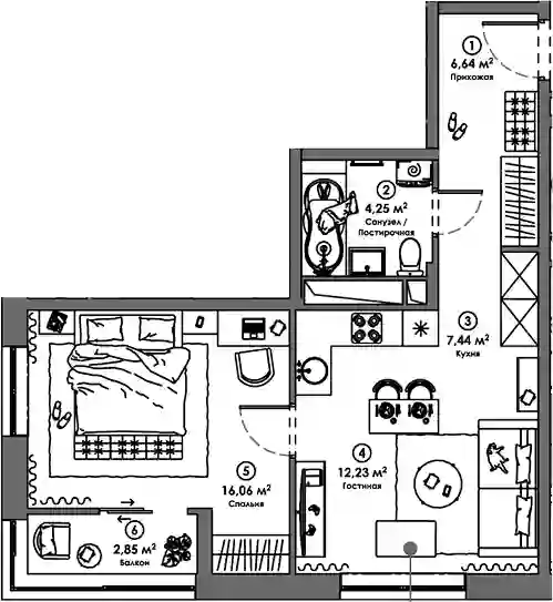 9 357 530 ₽2-к.квартира, 46.62 м², 16 эт.