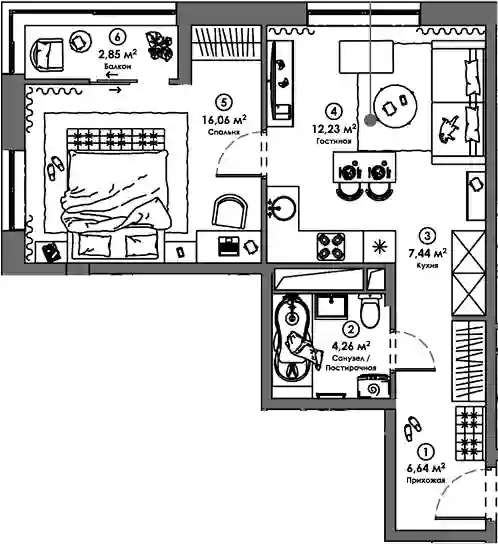 2-к.квартира, 46.62 м², 5 эт. в ЖК Триумф Корпус 2