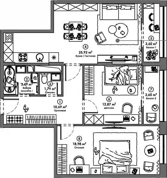 В ЖК «Триумф» предложено множество планировочных решений: в наличии квартиры как классического типа, так и европланировки. Сдаются они без отделки, с высотой потолков от 2,83 до 3,5 метра. Проектом предусмотрены теплые лоджии с двухкамерным остеклением. Из окон открывается живописный вид на реку.