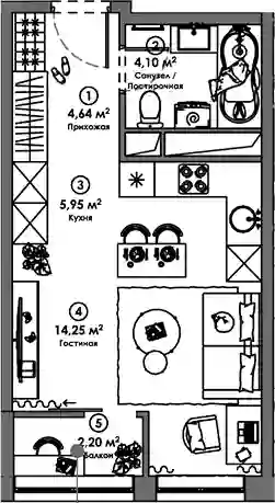 5 312 160 ₽Студия, 28.45 м², 5 эт.