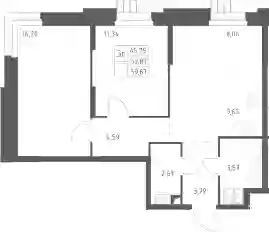 18 957 747 ₽3-к.квартира, 55.97 м², 11 эт.